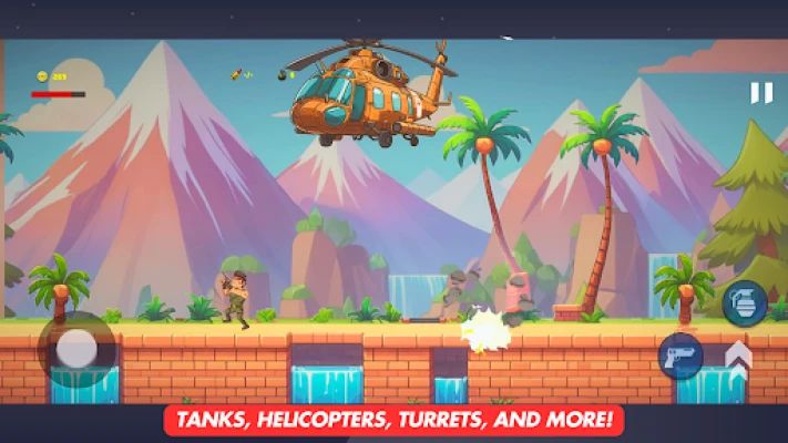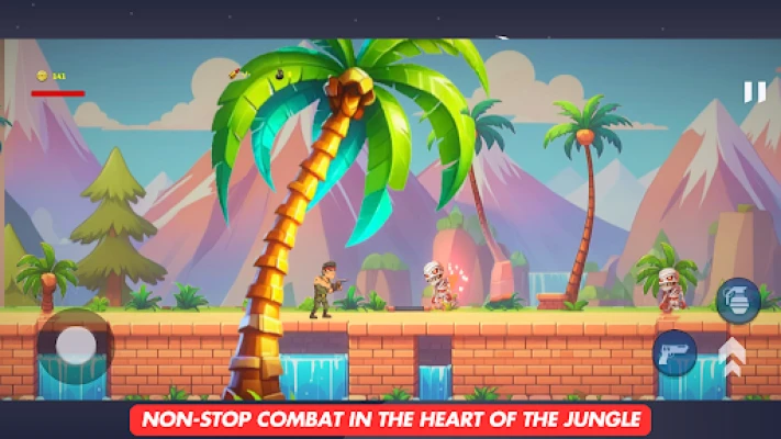 في قلب المعركة، ستجد نفسك منغمسًا في اشتباكات عنيفة ضد جحافل من المرتزقة والوحوش ذات القدرات الهائلة التي تحاول السيطرة على الغابات. استخدم ترسانة متنوعة من الأسلحة الفتاكة – من المسدسات السريعة والسكاكين الحادة إلى القنابل المدمرة – لشق طريقك نحو النصر. كل عدو يتم إقصاؤه يجلب لك مكافآت قيمة يمكنك استثمارها في متجر الترقية، لتعزيز عتادك وتزويد نفسك بأحدث البنادق والمعدات، مما يضمن استعدادك لأي مواجهة قادمة. اللعبة تمزج ببراعة بين إثارة ألعاب المنصات ودقة إطلاق النار في بيئة ثنائية الأبعاد، لتقدم تجربة لعب ديناميكية تتطلب المهارة والتخطيط.