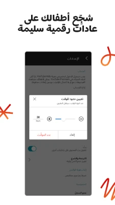 لضمان تجربة مثالية ومطمئنة، يضع YouTube Kids أدوات رقابة أبوية قوية في متناول يدك. يمكنك التحكم الكامل في المحتوى، حظر أي فيديوهات أو قنوات لا تراها مناسبة، والإبلاغ عن أي محتوى غير لائق ليقوم فريقنا بمراجعته. كما ندعم بناء عادات رقمية صحية من خلال ميزة المؤقت الذكي، التي تساعد على تحديد فترات المشاهدة وتشجع أطفالك على أخذ استراحات للعب وتطبيق ما تعلموه في العالم الحقيقي. من المهم إعداد هذه الأدوات لضمان أفضل بيئة لعائلتك، مع العلم بأن بعض المحتوى التجاري من صانعي المحتوى قد يظهر دون أن يندرج تحت الإعلانات المدفوعة.